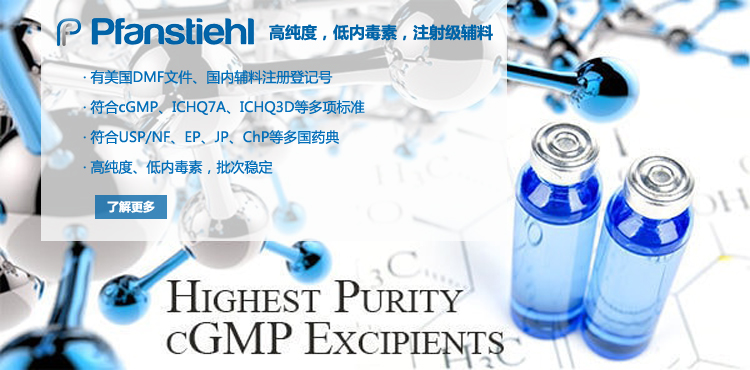 “熱烈祝賀Pfanstiehl的注射級甘氨酸Glycine(G-140)喜獲CDE登記號F20250000403, 這是Pfanstiehl產品獲得的第18個CDE登記號!”甘氨酸在醫藥輔料制劑中應用廣泛,, 可作為緩沖劑,增溶劑,穩定劑等,具有諸多優勢。Pfanstiehl秉承一貫高品質理念,為滿足全球生物制藥行業對于高品質甘氨酸的需求,隆重推出的注射級甘氨酸Glycine (G-140), 具有超高純度,超低內毒素,超低金屬殘留的特點,單獨檢測29種金屬離子,并且新增DNA,RNA,DNA酶,RNA酶和脂肪酶,亞硝酸鹽等多項質量指標的檢測,符合多國藥典規定(USP, EP, BP, JPE, ChP),可用于生物治療性藥物和疫苗的生產。產品信息:· 產品名稱:Glycine, High Purity, Low Endotoxin, Low Metals, USP, EP, BP, JPE, ChP (G-140)· 中文名稱:甘氨酸· 分子式:C2H5NO2· 分子量:75.07 g / mol· CAS號:56-40-6· 產品貨號:G-140產品特點: · 超高純度,超低內毒素,超低微生物含量,超低金屬雜質殘留· 質量指標新增DNA,RNA,DNA酶,RNA酶,脂肪酶和亞硝酸鹽檢測· 符合多國藥典:USP, EP, BP, JPE, ChP· 符合ICH Q3D標準· 符合GMP標準· 已獲DMF和CDE登記號 產品應用:· 緩沖劑· 穩定劑· 增溶劑如果您對Pfanstiehl注射級別Glycine G-140感興趣,歡迎聯系Pfanstiehl 中國區代理商北京西美杰科技有限公司獲得如下詳細的產品概況說明文件和測試樣品。Pfanstiehl Inc.最新產品系列如下,歡迎聯系北京西美杰科技有限公司獲取100g裝免費樣品。北京西美杰科技有限公司為Pfanstiehl中國代理,為客戶提供完善的技術支持與售后服務。歡迎撥打西美杰客服電話400-050-4006或者登陸網站www_xmjsci_com.91vipcp9791.cn了解更多信息。 更多>
